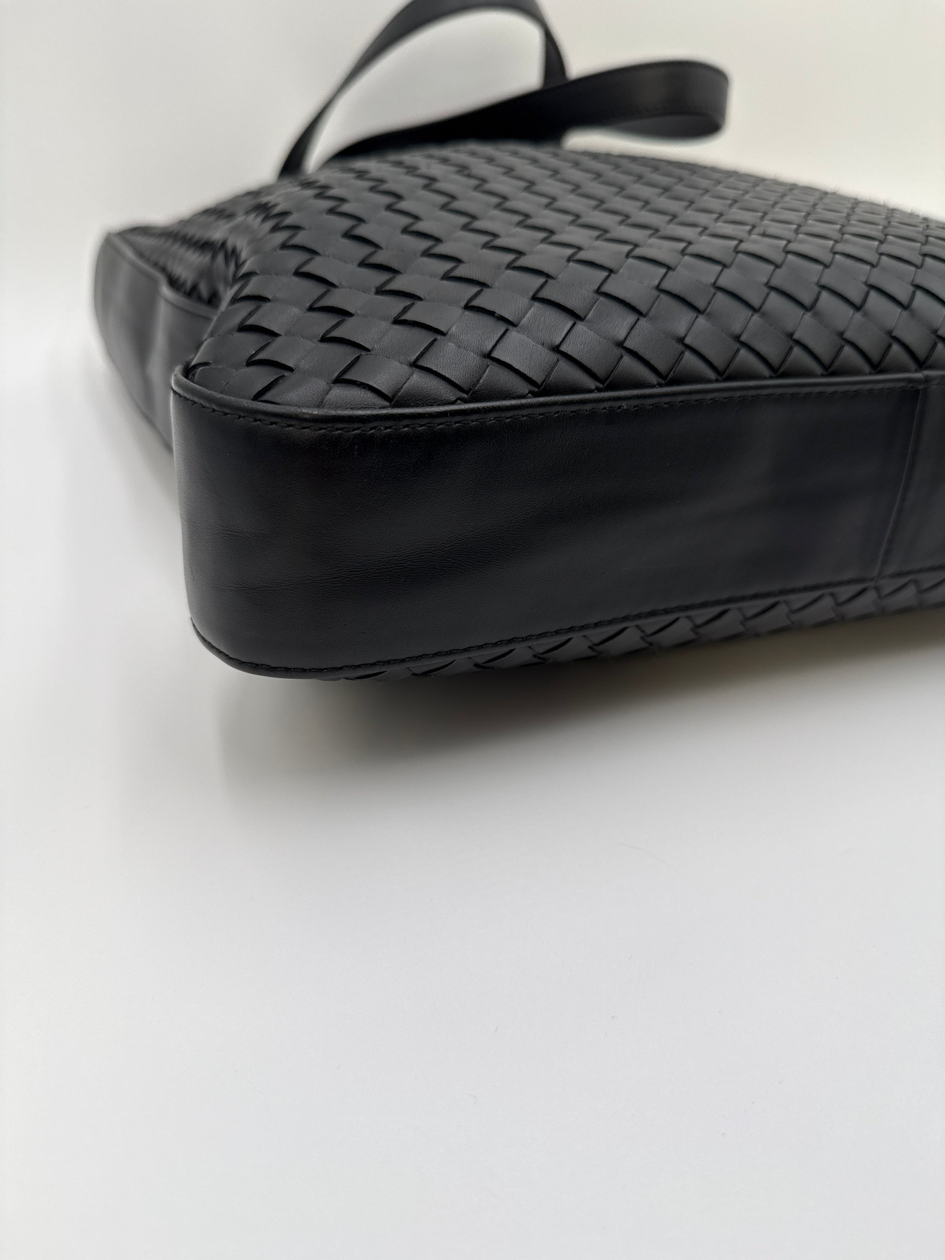Questa borsa Bottega Veneta è realizzata in lussuosa pelle nera. Il design elegante e resistente offre un'opzione di stile senza tempo per portare con sé tutti i tuoi oggetti essenziali. Grazie alla sua alta qualità e durata, questa borsa sarà un investimento durevole nella tua collezione di accessori.