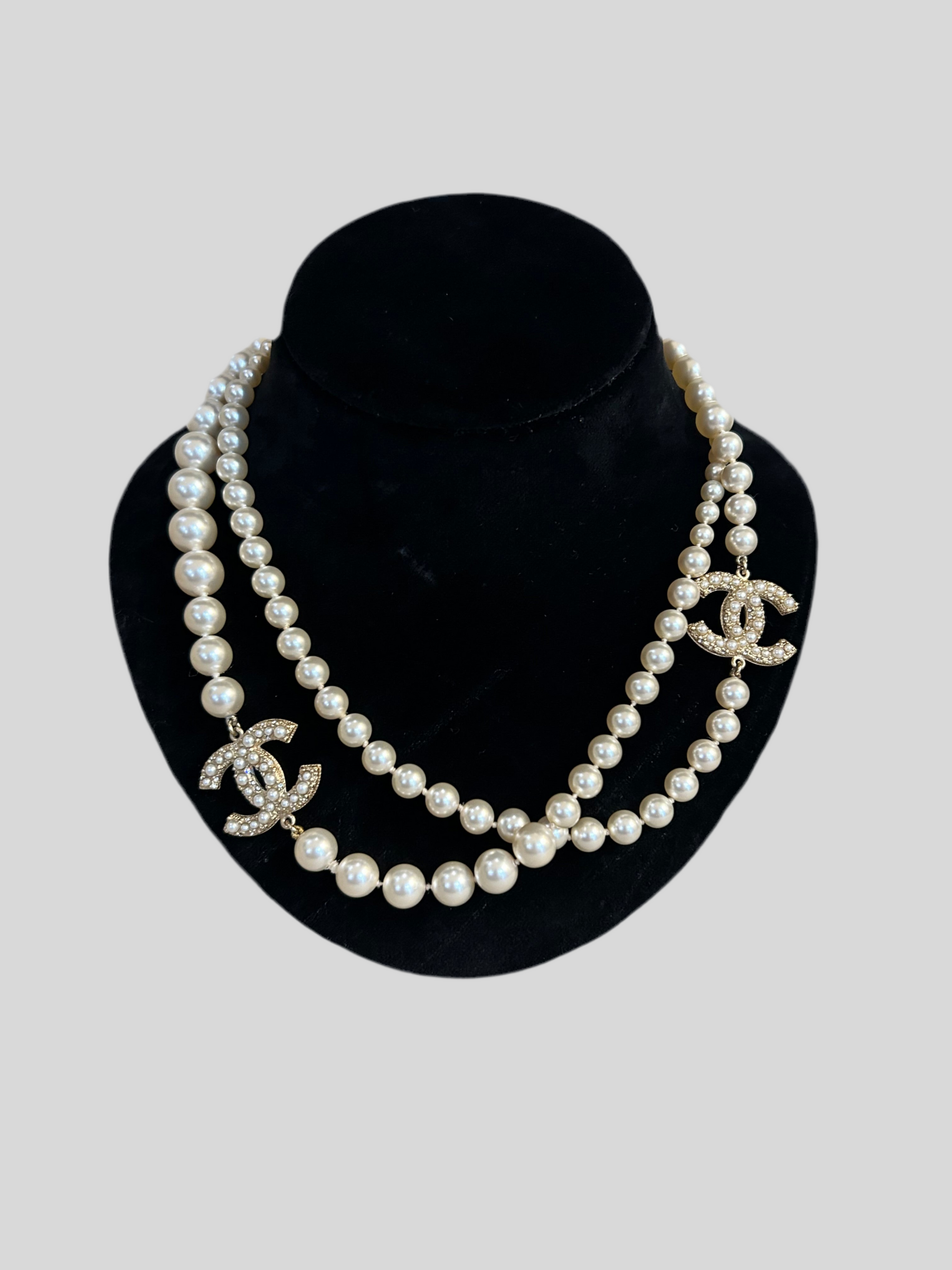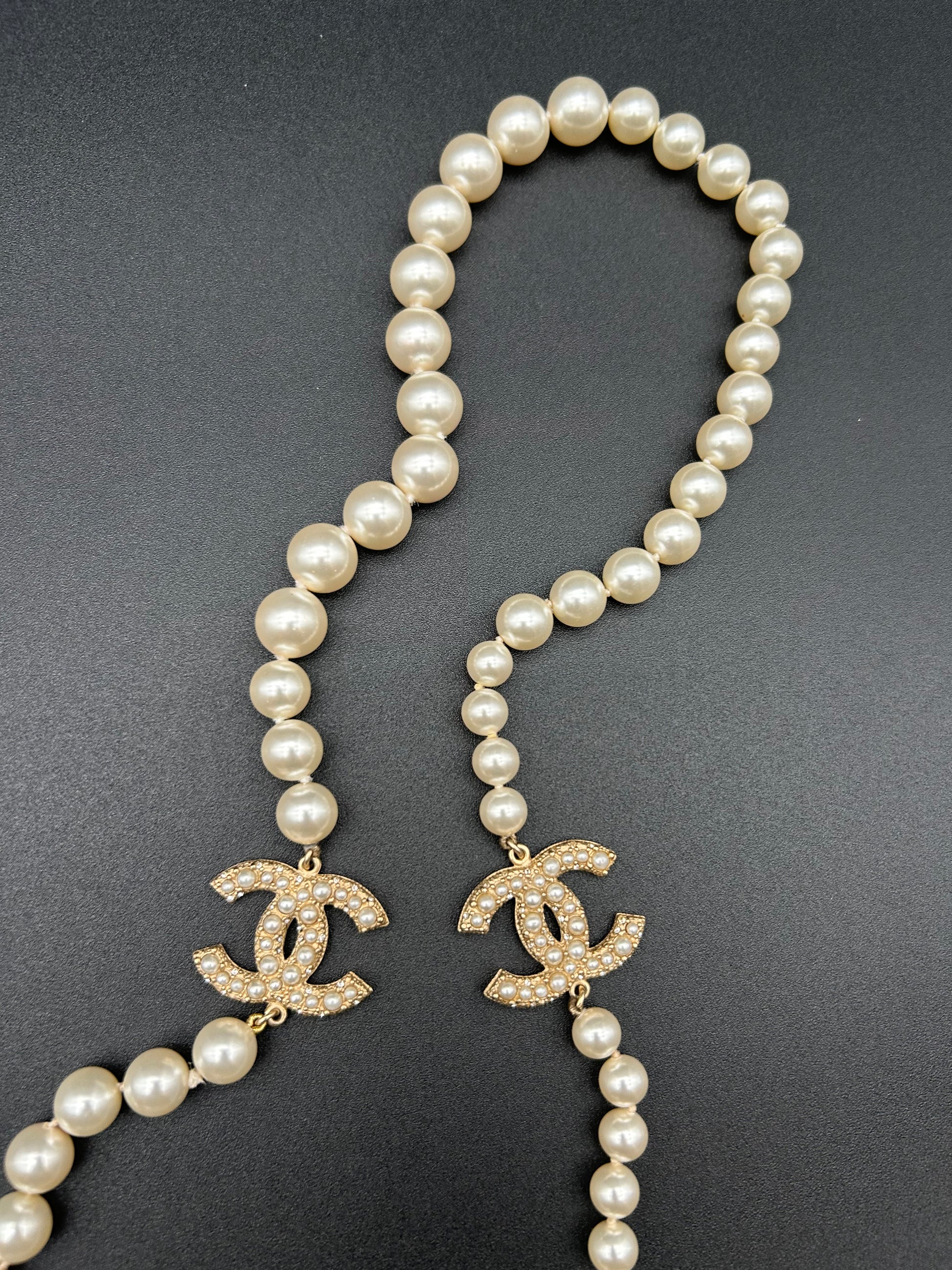 The Chanel CC Pearl Necklace is a high-quality piece of jewelry, perfect for those seeking a touch of elegance and sophistication. With its luminous pearls and the legendary Chanel CC logo, this necklace is a must-have for any jewelry collection. Add a touch of class to your look with this exclusive necklace.