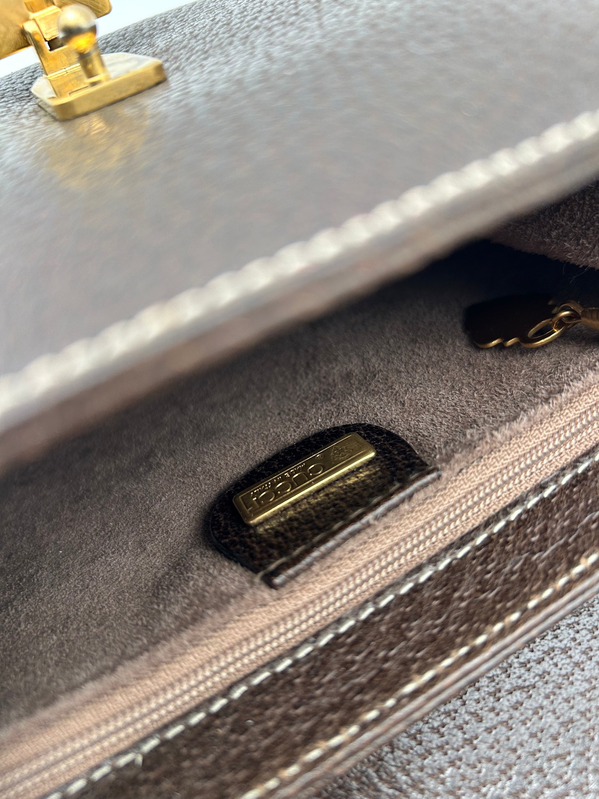 brown pigskin Alessandro Michele 2016 collection, good condition original box and dustbag, there is a sign of wear inside the bag as seen in the photo bamboo closure.