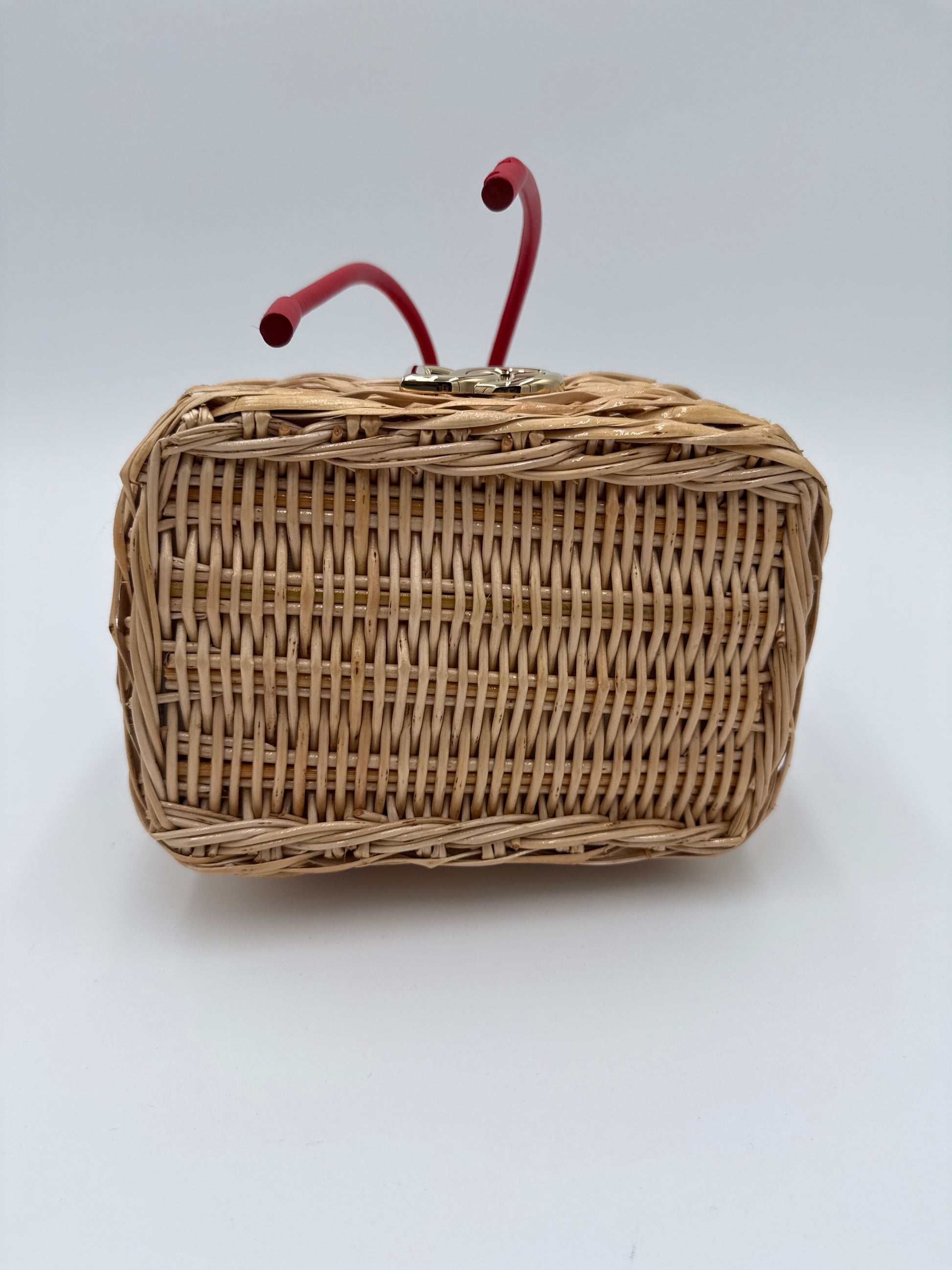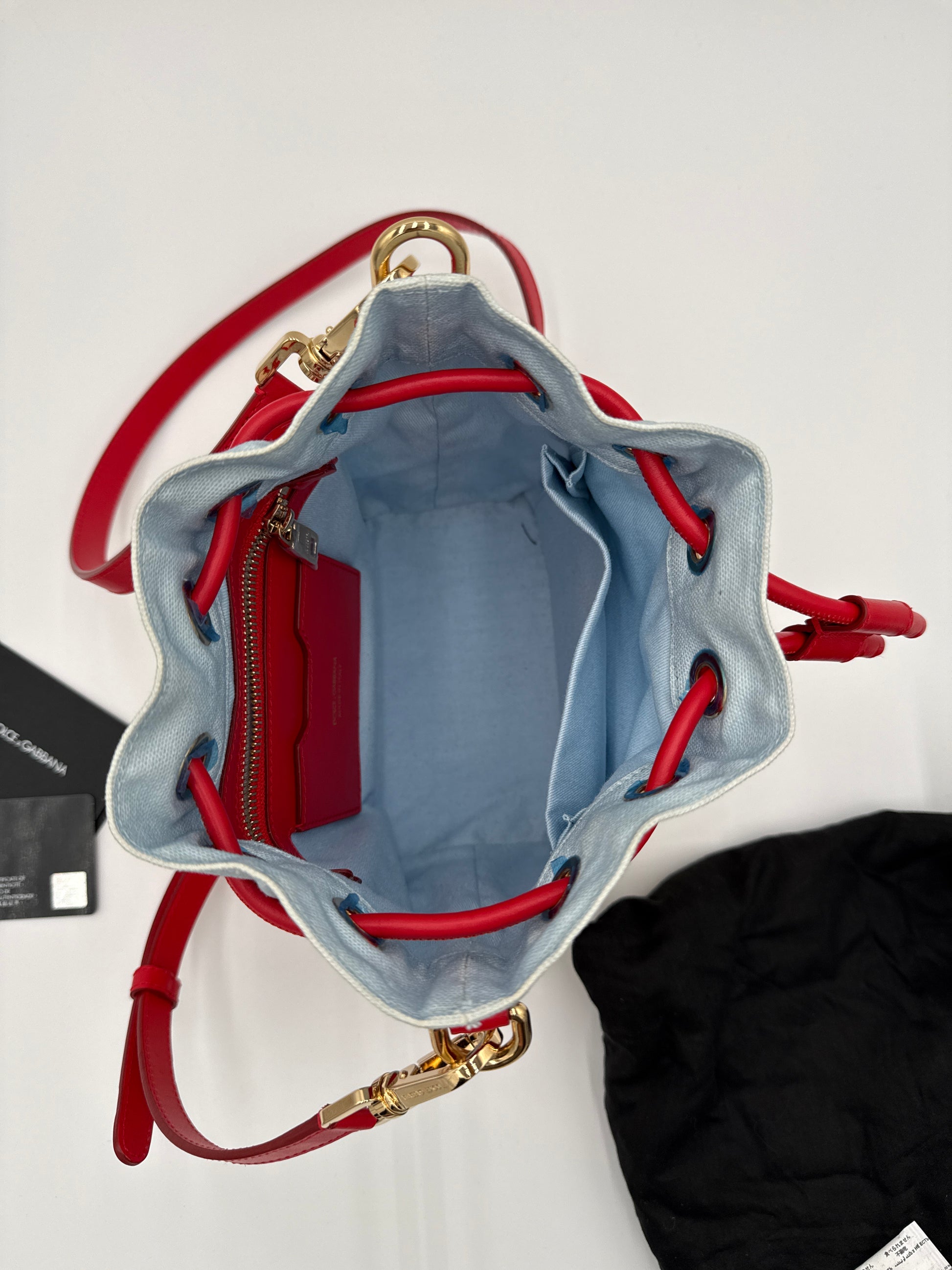 Borsa secchiello midollino + canvas e vitello liscio rosso