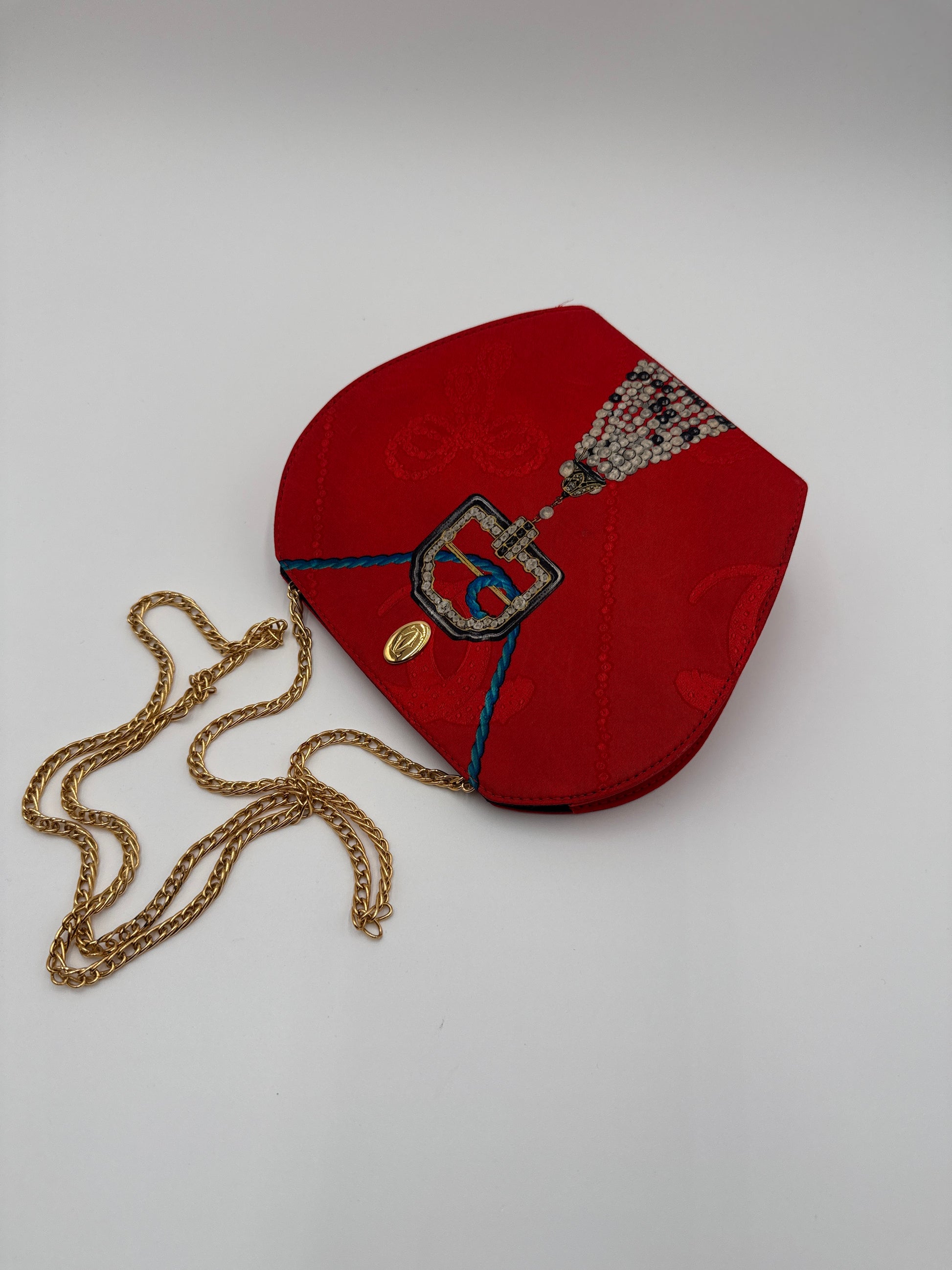 Cartier Borsa Vintage tracolla Seta C Seide con catena oro e decortazioni Gioiello