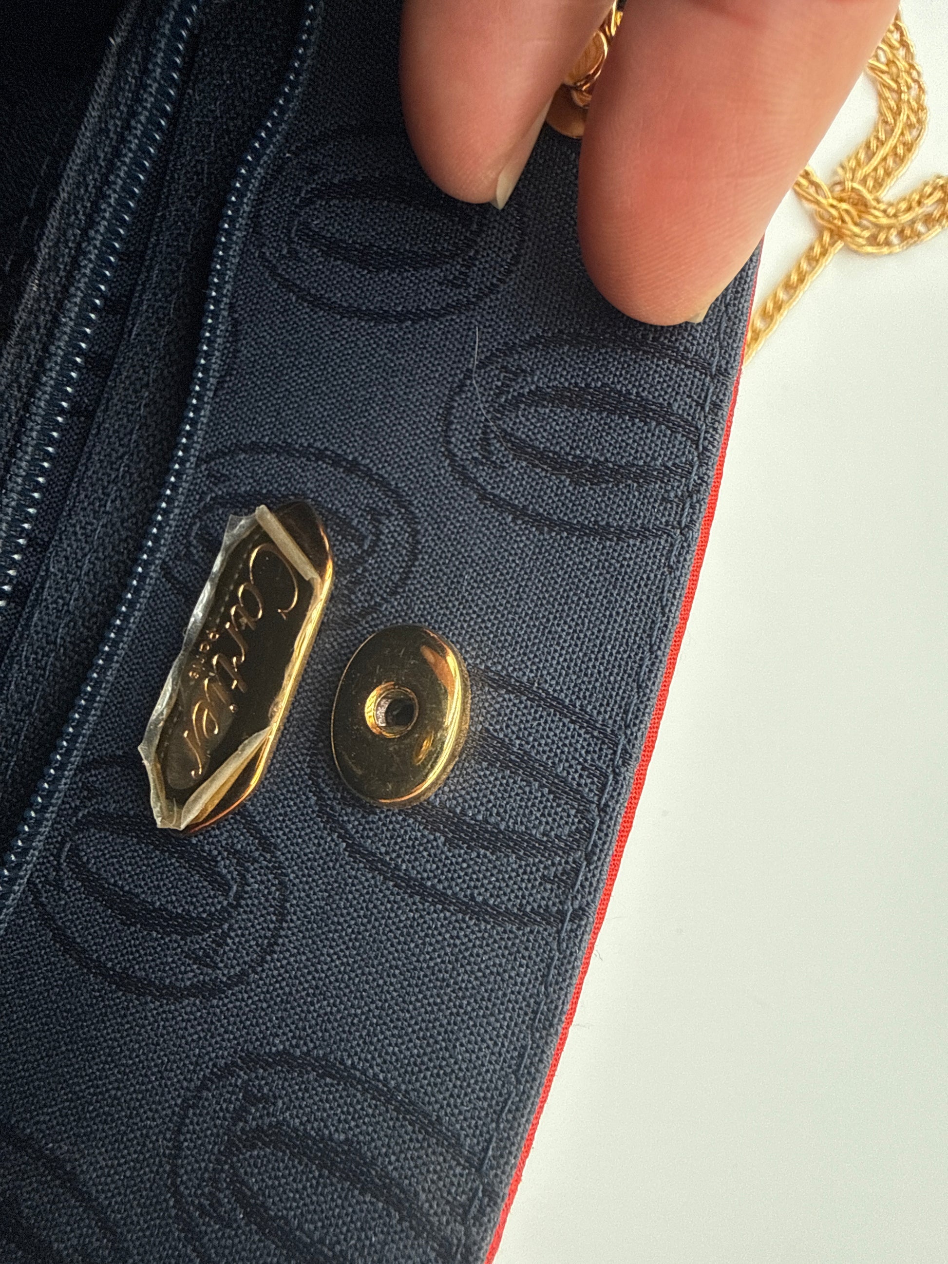 - Colore Rosso con disegni gioielli stampati vedi foto,interno nero con Logo Cartier una piccola tasca chiusura magnetica