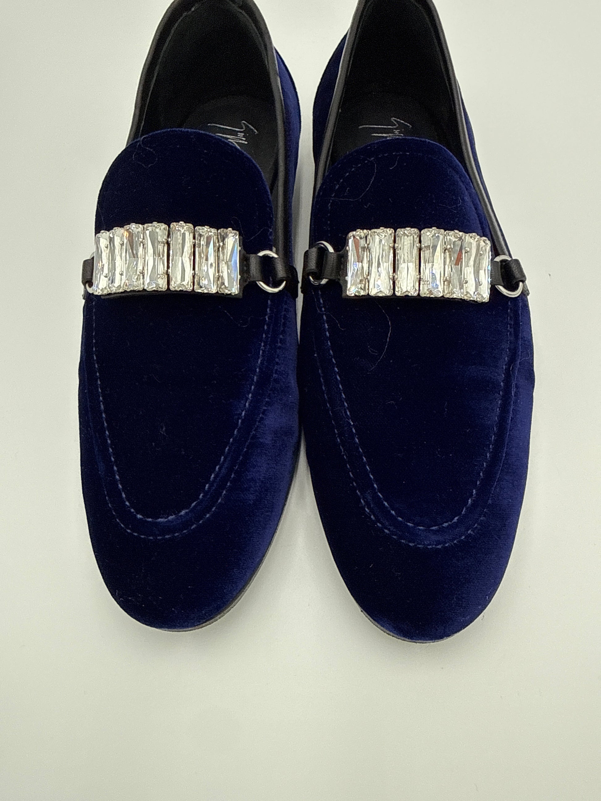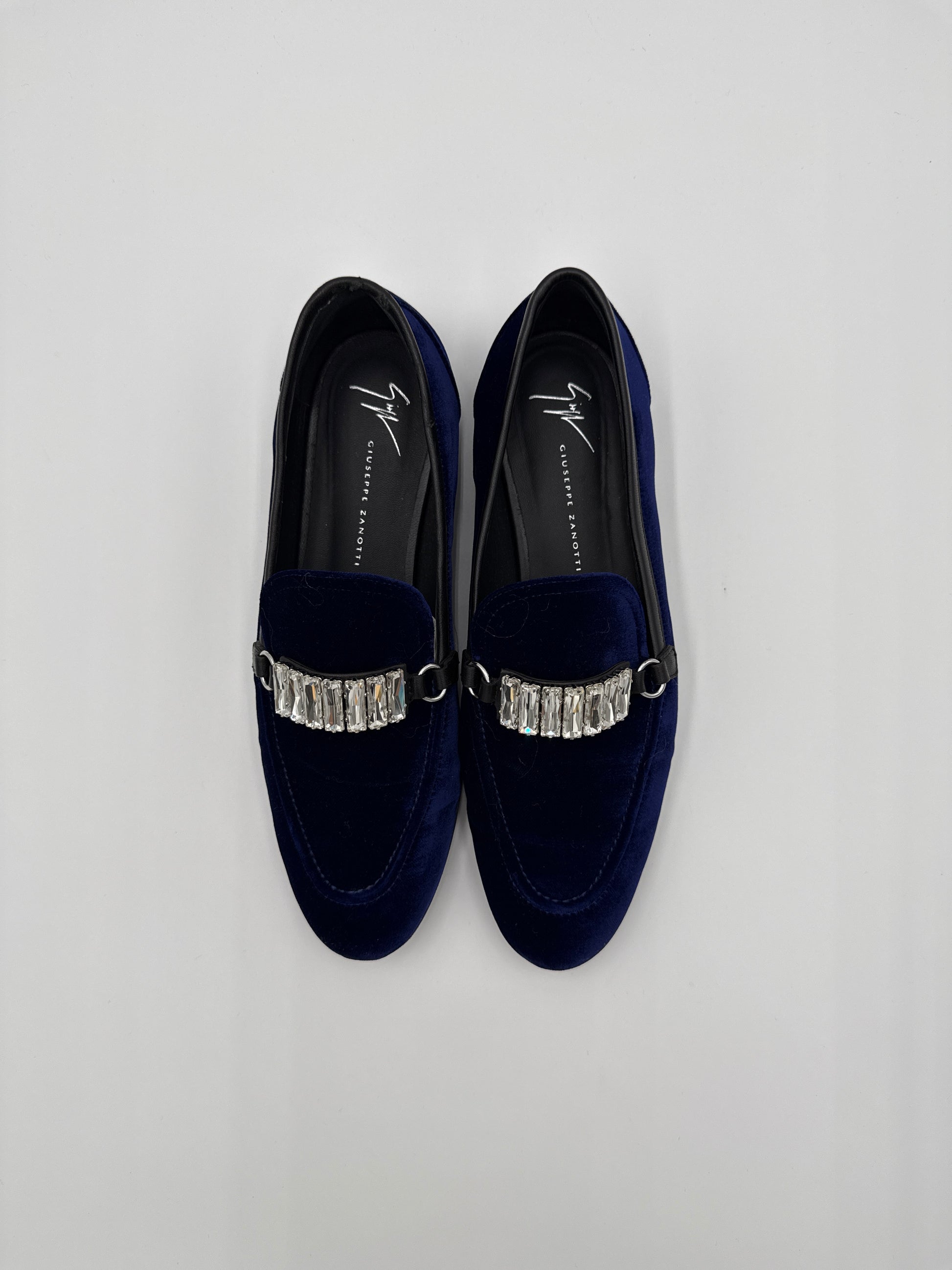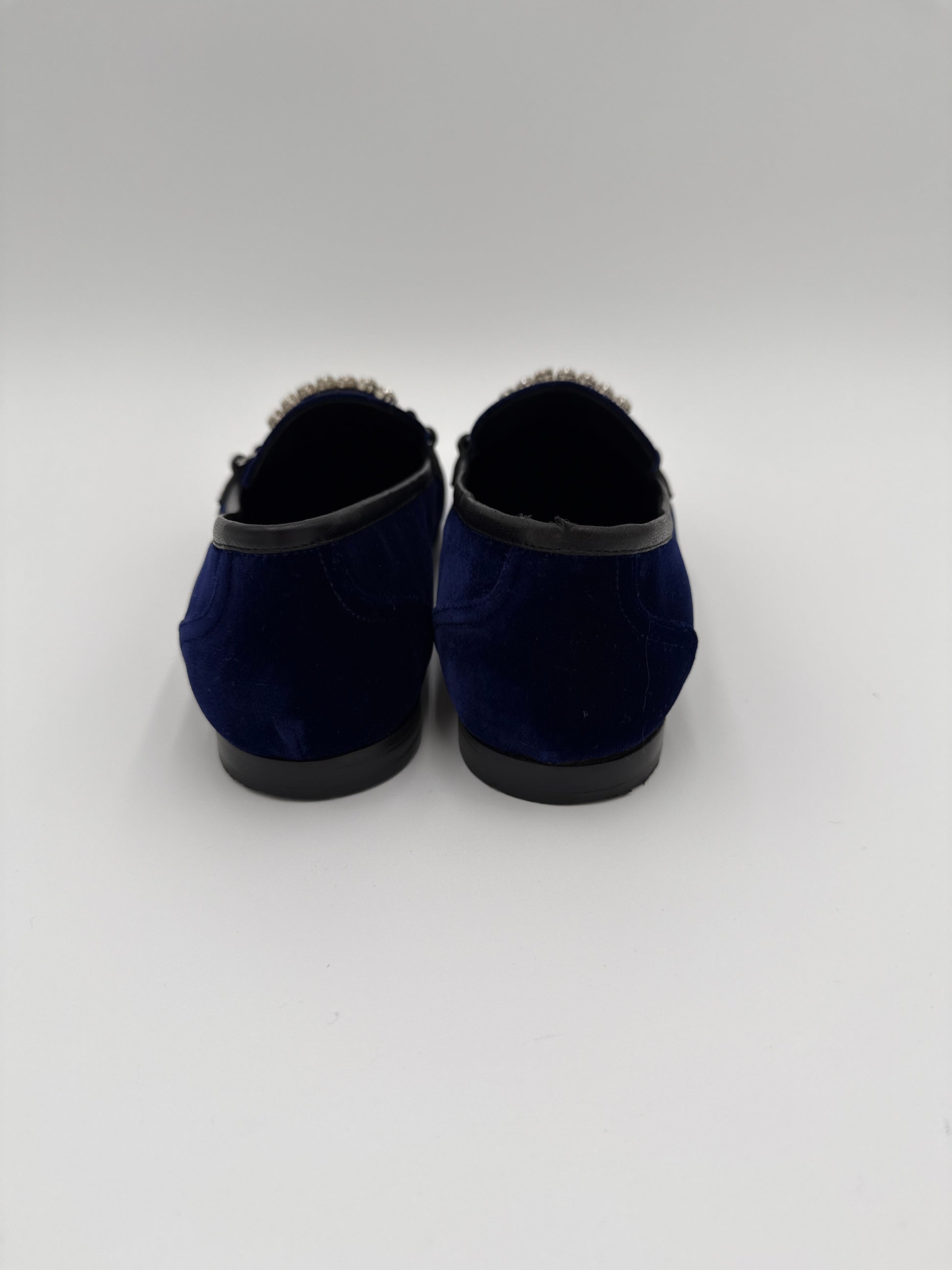Mocassini in velluto blu con morsetto di Swarovski
