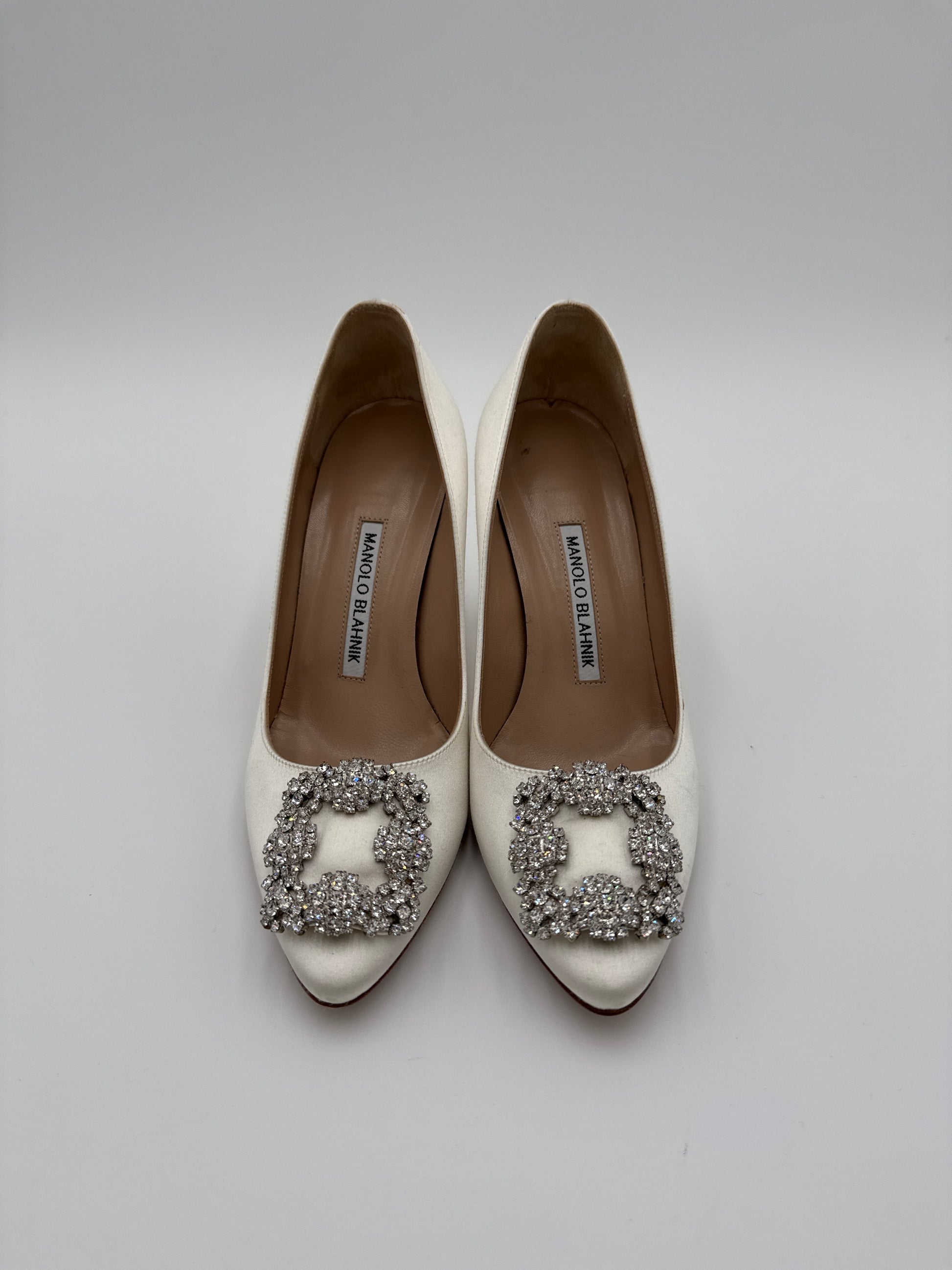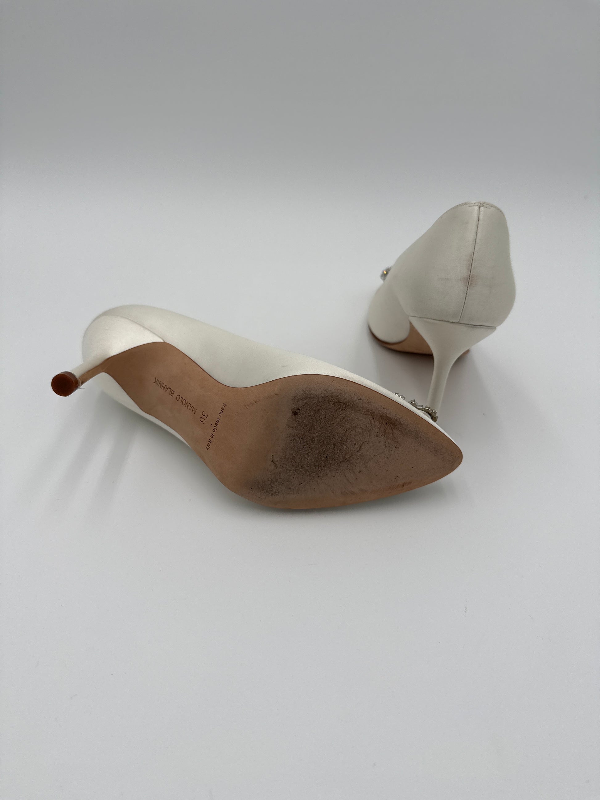 Iconiche scarpe Manolo blahnik segni di usura come da foto colore bianco in seta con morsetto di Swarovski