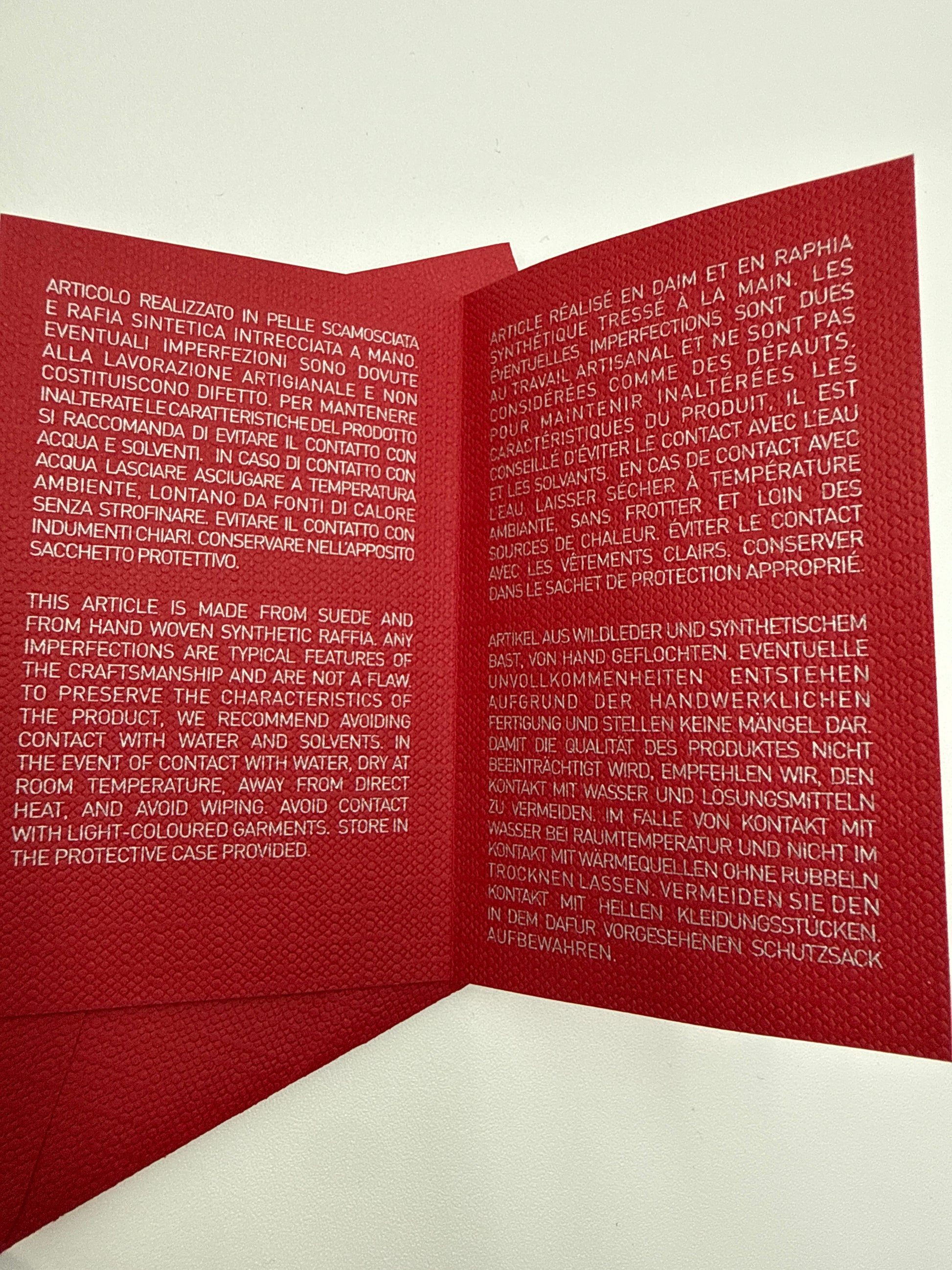 - Materiale Pelle di Vitello marrone e Raffia naturale con borchie in metallo dorato anticato.