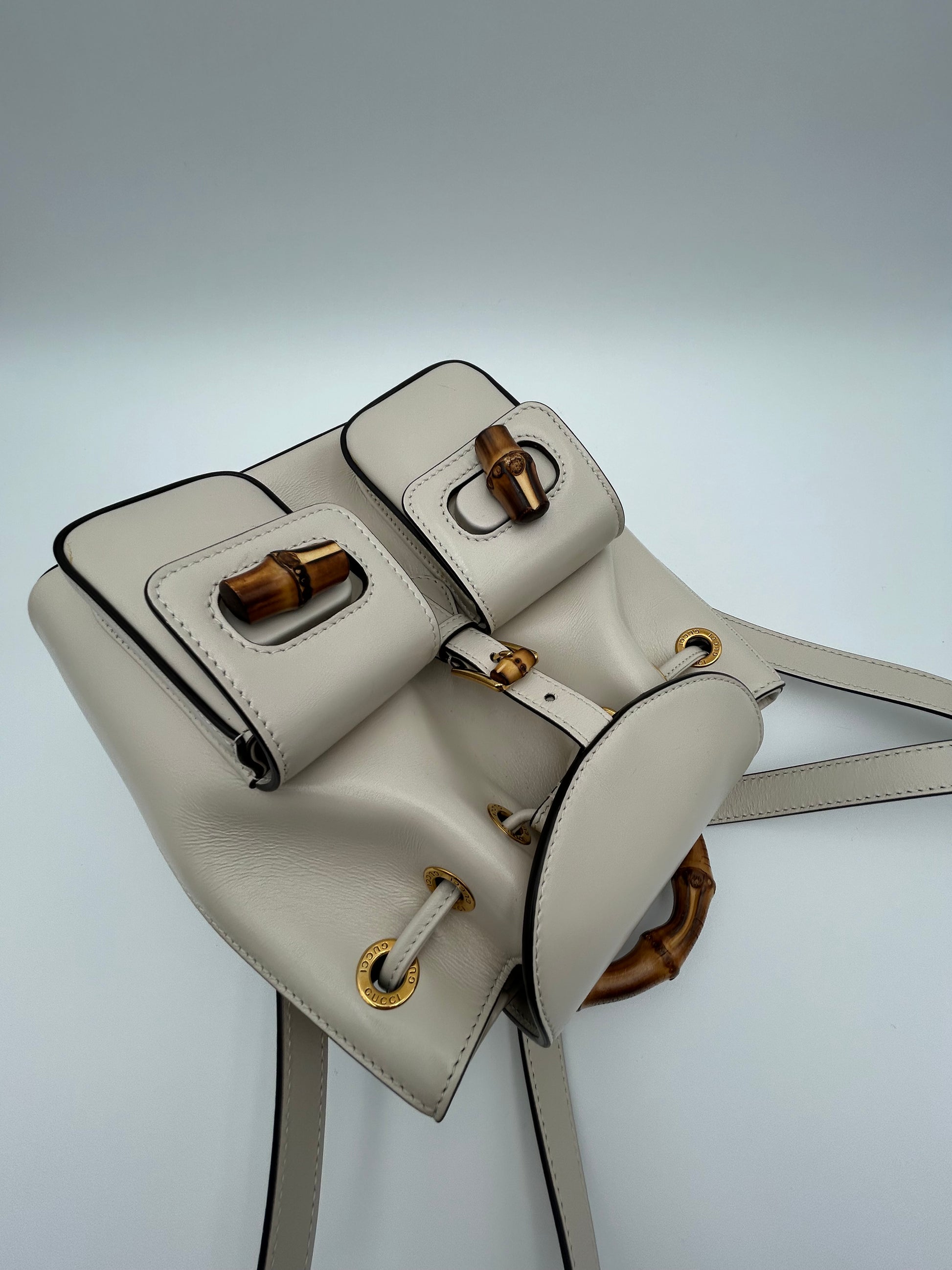 Zaino Gucci seconda mano con iconico manico Bamboo,