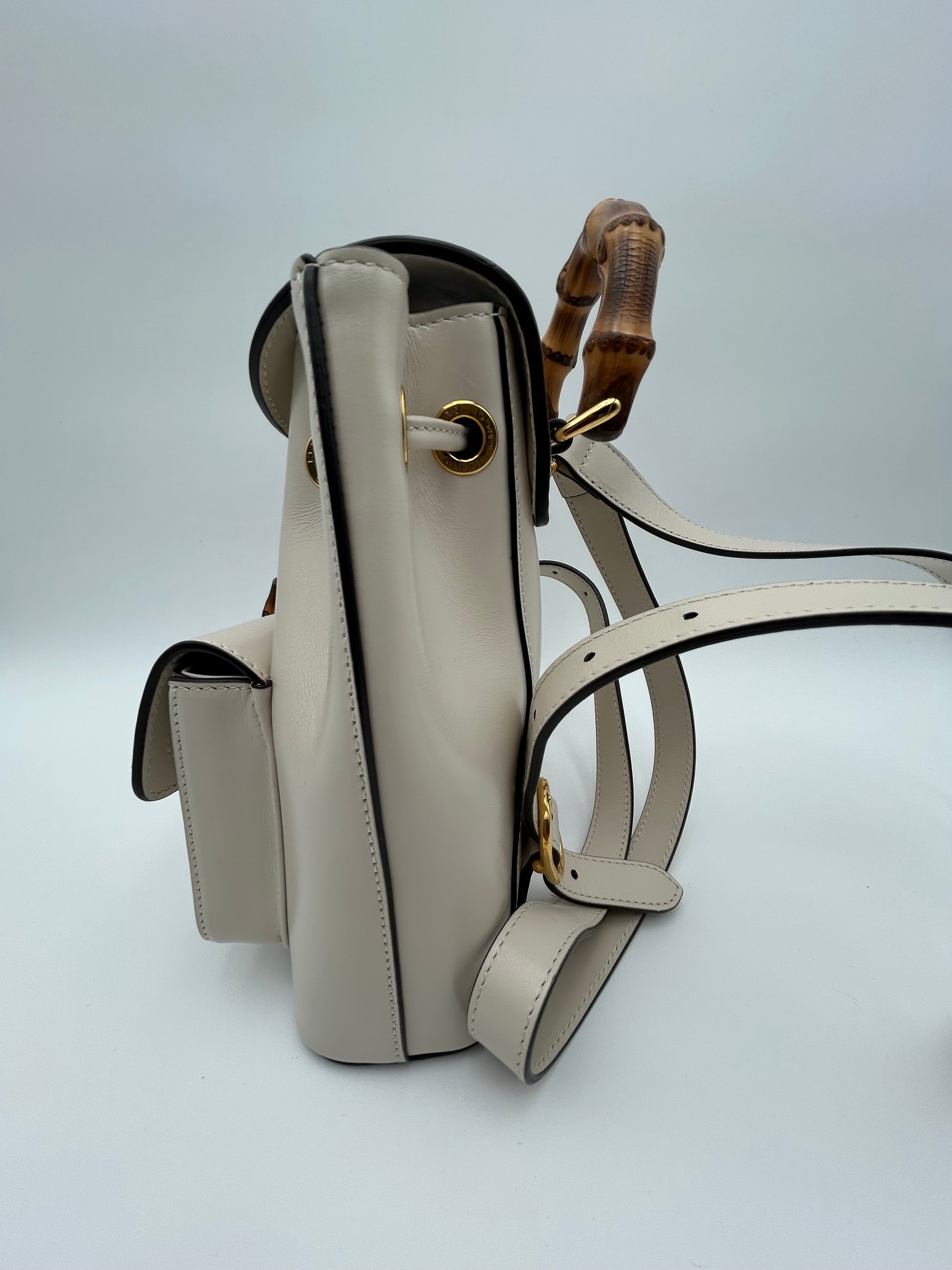 Lo zaino Gucci Bamboo col suo manico iconico è il perfetto accessorio per un look elegante e alla moda. Realizzato con il pregiato materiale in bambù, questo zaino mini offre un tocco di lusso e un design unico. Ideale per chi ama essere sempre al passo con le ultime tendenze, questo zaino ti farà distinguere dalla massa con classe e stile.